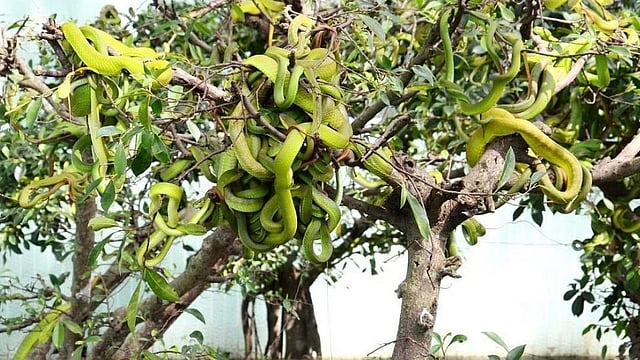 வியட்நாம் நாட்டில் தான் இந்த அரிய வகை தோட்டம் உள்ளது. இந்த தோட்டத்தில் உள்ள மரங்களில் பழங்களோ காய்கறிகளோ இல்லை, மாறாக பாம்புகள் இருக்கின்றன. மரத்தின் கிளைகளில் பாம்புகள் மட்டுமே நிறைந்துள்ளன.