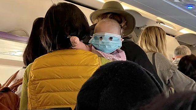 இந்த நிலையில் நியூசிலாந்தில் ஆக்லாந்திலிருந்து வெலிங்டனுக்கு செல்லும் விமான நிலையத்தில் பயணித்த ஒரு குழந்தை மாஸ்க் போட்டுள்ளார். அதில் என்ன அதிசயம் என்று தானே கேட்கிறீர்கள்?