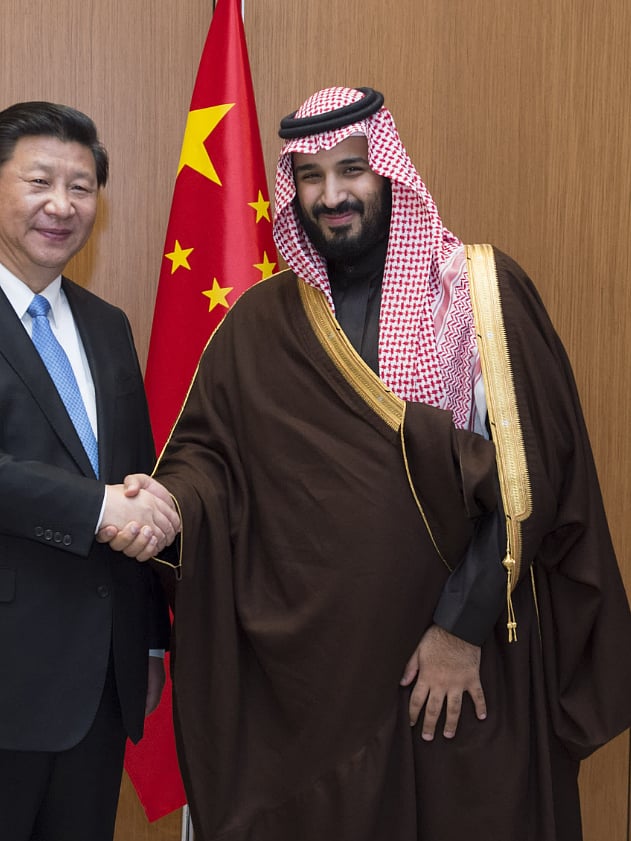 சவுதி பட்டத்து இளவரசருக்கு கைக்கொடுத்த சீன அதிபர் ஷி ஜின் பிங்க்.