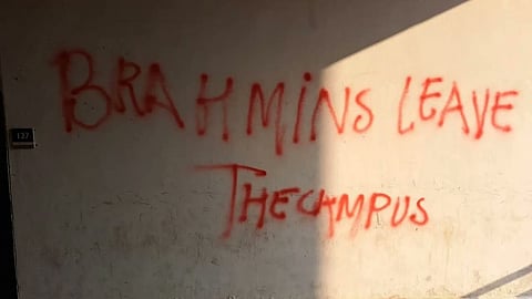 பல்கலைக்கழக சுவர்களில், பிராமணர்கள் மற்றும் பனியா சமூகத்தினருக்கு எதிரான வாசகங்கள் இடம் பெற்றிருந்ததாக என்.டி.டி.வி செய்தி வெளியிட்டிருக்கிறது.