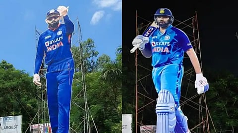 இந்திய அணியின் புதிய கேப்டன் ரோஹித் சர்மாவும், தன் பங்கிற்கு தலைமை ஏற்றது முதல் வெற்றிகளை குவித்து வருகிறார். இந்நிலையில், அவர்களது வருகையை கொண்டாடும் விதமாக இருவரின் ரசிகர்களும் மிகப் பெரிய கட் அவுட்களை வைத்துள்ளனர். இந்த கட் அவுட்கள் கிட்ட தட்ட 100 அடி உயரம் உள்ளன. கேரள வீரரான சஞ்சு சாம்சனுக்கும் பெரிய அளவிலான கட் அவுட் வைக்கப்பட்டுள்ளது