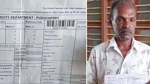 புதுச்சேரி விஸ்வநாதன் நகர் சேக்கிழார் தெருவைச் சேர்ந்த சரவணன் என்பவர் லட்சக் கணக்கில் வந்த மின்கட்டணத்தைப் பார்த்து அதிர்ச்சி அடைந்தார்.