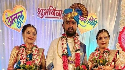 சோலாப்பூரைச் சேர்ந்த நபர் இரட்டை சகோதரிகள் இருவரையும் ஒரே நேரத்தில் திருமணம் செய்து கொண்டுள்ள சம்பவம் அனைவரையும் ஆச்சரியத்துக்குள்ளாகி உள்ளது.