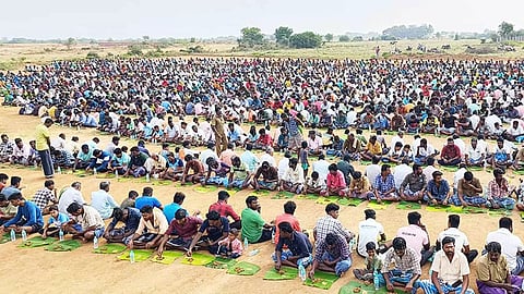 2,500 கிலோ அரிசியில் செய்யப்பட்ட விருந்தில் செக்கானூரணி உட்பட 10 கிராம ஆண்கள் மட்டும் பங்கேற்றுள்ளனர்.