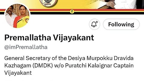 விஜயகாந்த் அரசியல் வாழ்விலும் சினிமா வாழ்விலும் துணை நின்றவர் பிரேமலதா. இவர், விஜயகாந்தின் ட்விட்டர் கணக்கை தனதாக்கிக்கொண்டது சர்ச்சையை ஏற்படுத்தியிருக்கிறது.