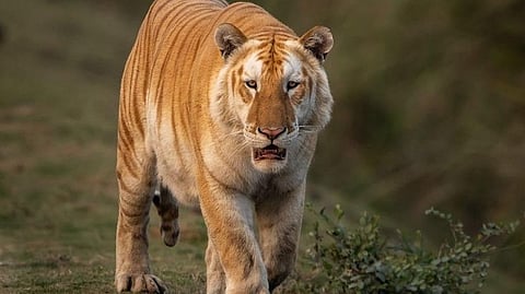 அசாமில் உள்ள காசிரங்கா தேசிய பூங்காவில் அரியவகை தங்க புலி சமீபத்தில் காணப்பட்டுள்ளது. அசாம் முதல்வர் ஹிமந்தா பீஸ்வ சர்மா தனது எக்ஸ்(ட்விட்டர்) தளத்தில் புகைப்படத்தை வெளியிட்டுள்ளார்.