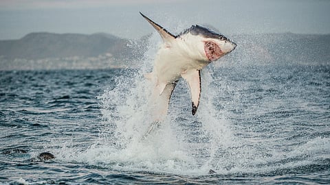 கரையில் இருந்து 40 மீட்டர் தொலைவில் அலைச்சறுக்கு சென்றபோது, எதிர்பாராத விதமாக பெரிய வெள்ளை சுறா அவரைத் தாக்கியுள்ளது.