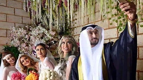 அரபு நாடுகளில் பலதாரமணம் என்பது பரவலான ஒன்றாக இருப்பதனால் இதனை மக்கள் எளிதாக நம்புகின்றனர். ஆனால் இது உண்மையில் ஒரு திருமணத்தின் புகைப்படம் இல்லை.