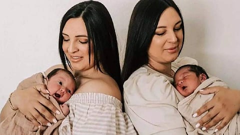 ஆனால், அமெரிக்காவின் கலிபோர்னியா மாகாணத்தில் 30 வயதான ஒரே மாதிரியான இரட்டை சகோதரிகள் ஒரே நாளில் ஆண் குழந்தைகளைப் பெற்றெடுத்துள்ளனர்.